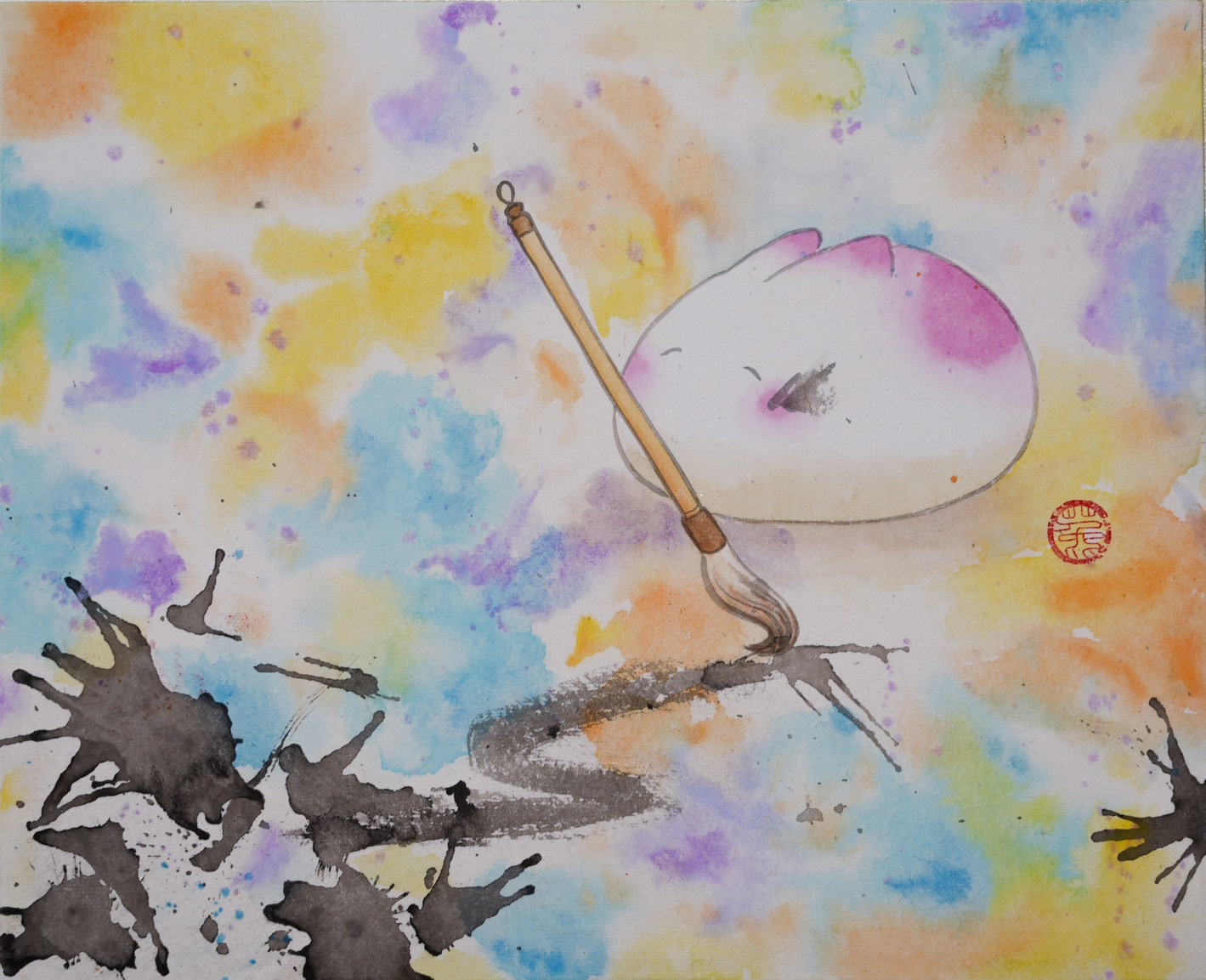 Tu-Yun Hsu’s work blends traditional Gongbi painting with the use of metallic foils, highlighting the versatility and richness of ink painting. Her mentor, Professor Chen Jianfa, Chair of the Department of Visual Arts and Design at National Tainan University, commented that her work reflects urban ink painting, presenting the social and psychological dimensions of the urban environment through the medium of ink. Professor Chen noted that Hsu’s artwork contains underlying messages and ideas, inviting viewers to connect with the pieces on a personal level as they engage with the art.