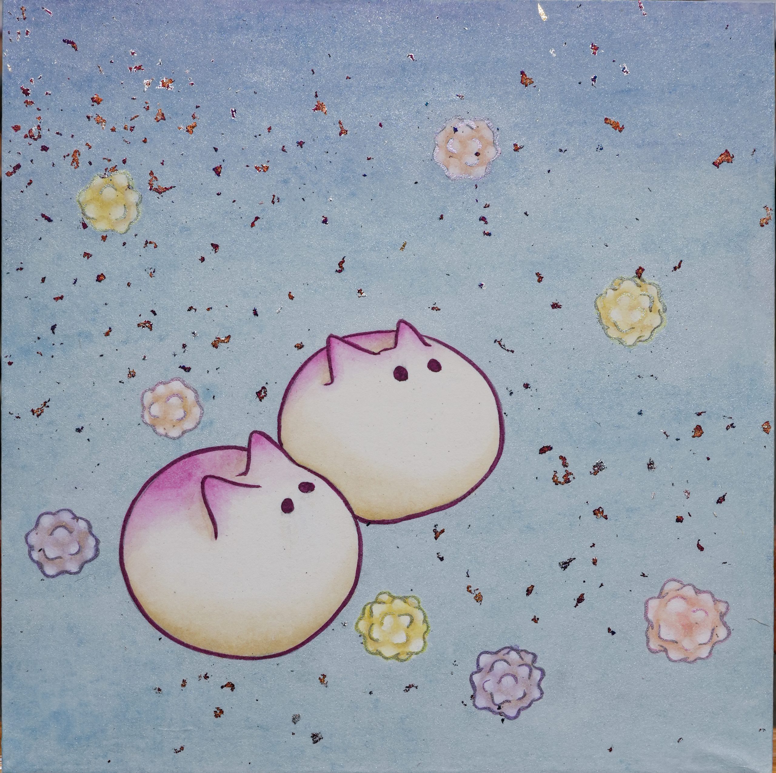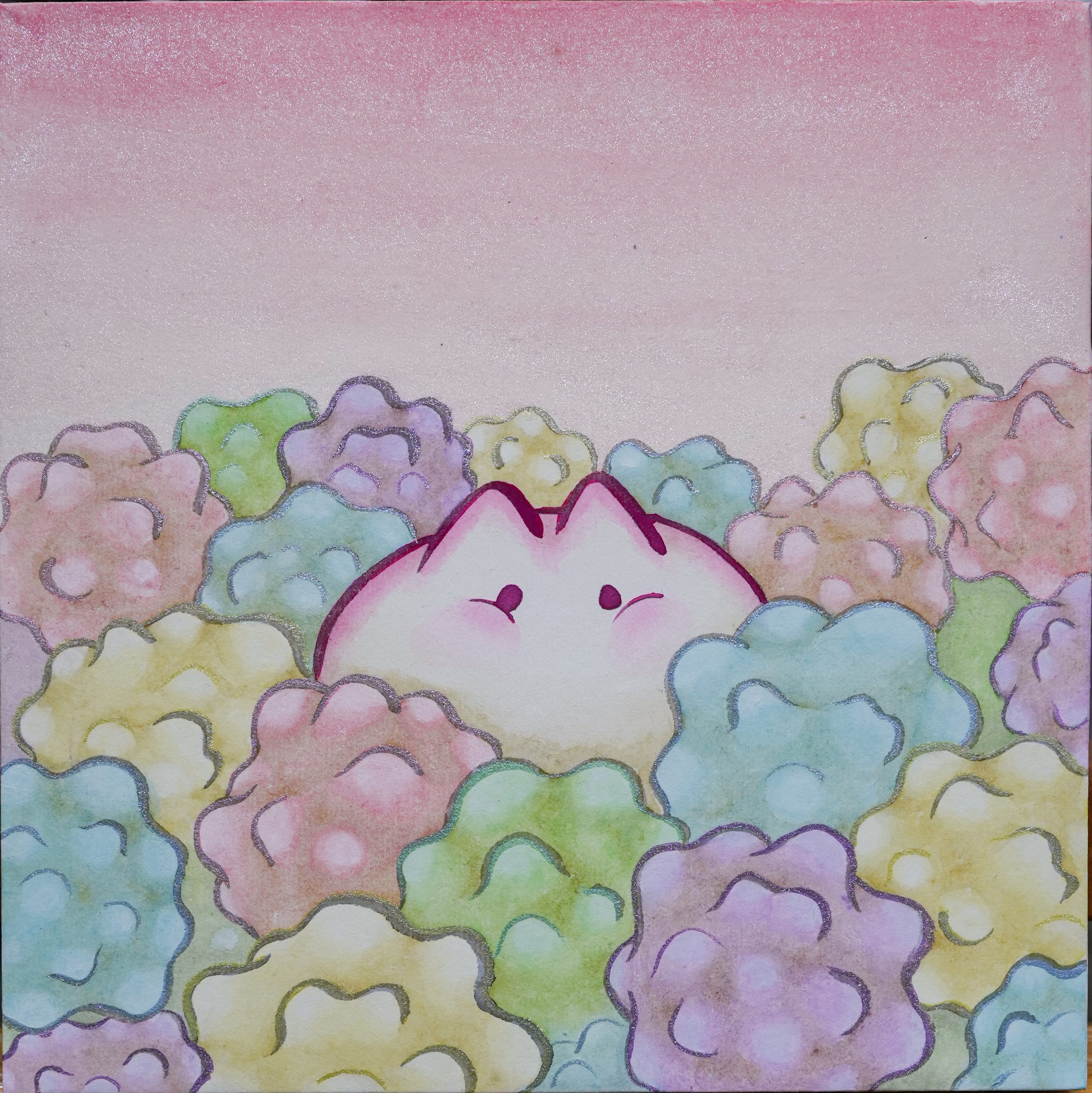 透過工筆畫的層層堆疊與暈染,她在細膩且緩慢的作畫過程中,不僅能夠沉靜心靈,還能將復雜的心緒傾注於畫作中。這些畫作表達了在社會規範的束縛下,人們如何在苟延殘喘中渴望自由,並努力保留內心深處的初衷。